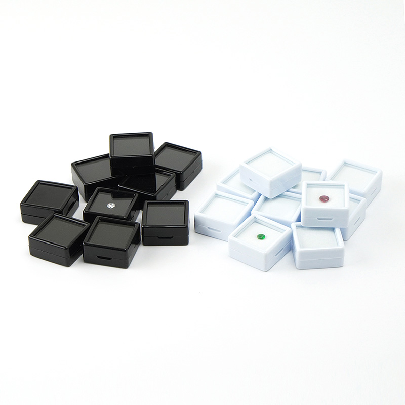 Standard square plastic case of white and block colors, 2 sizes available.